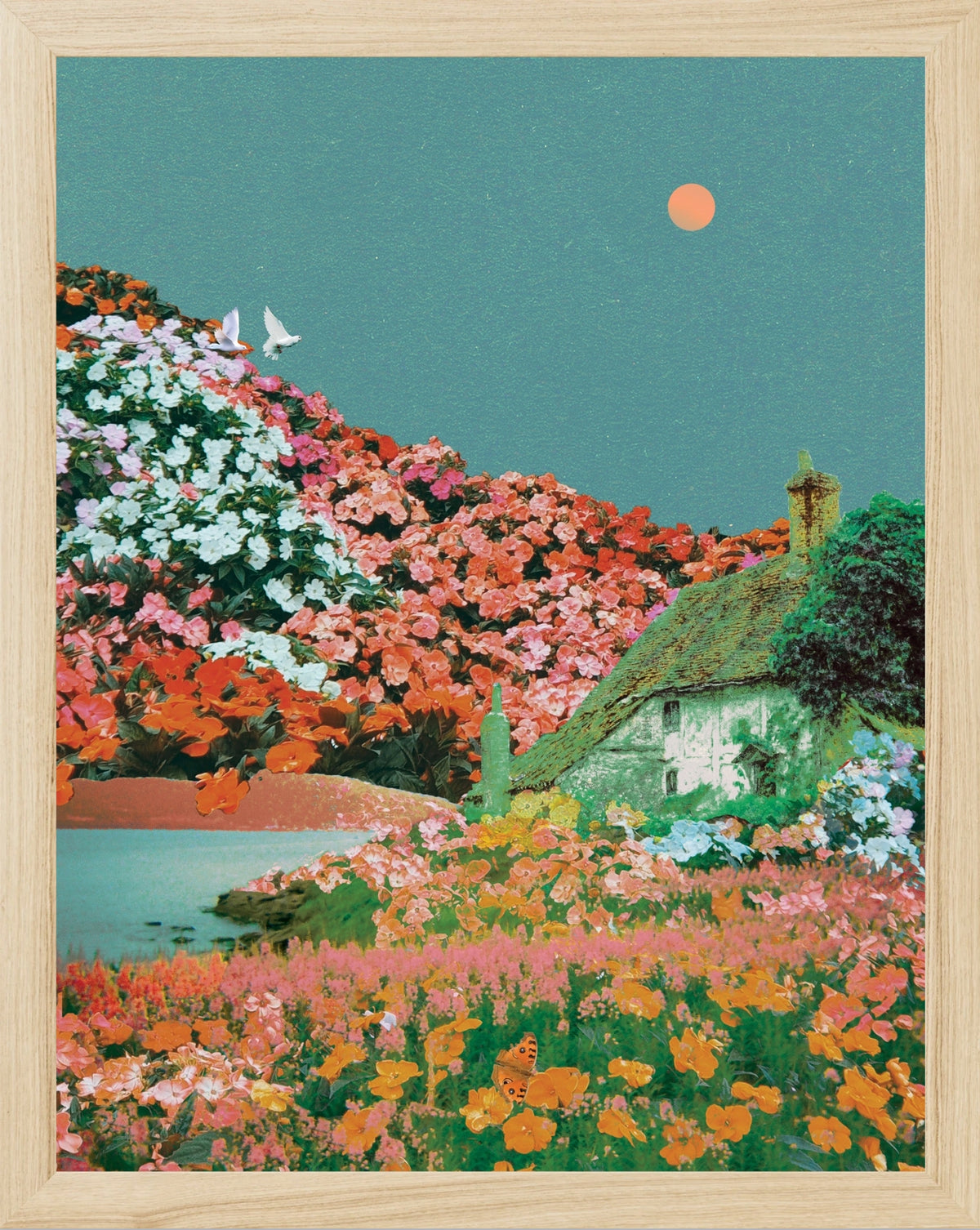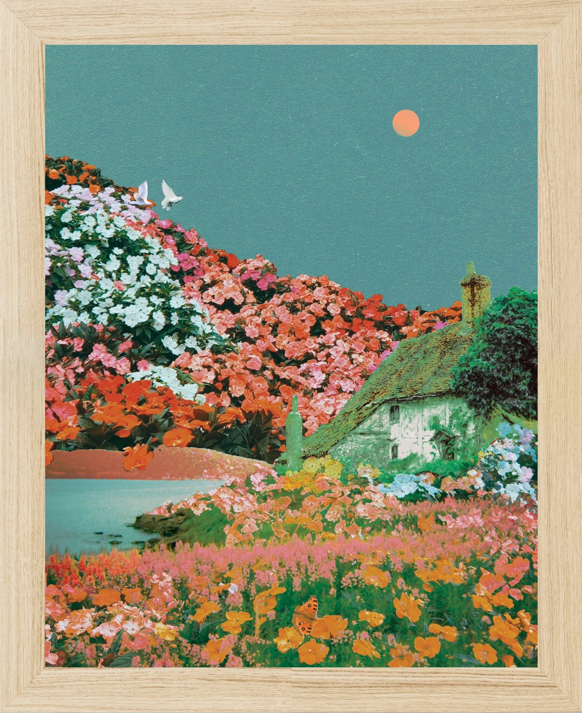 Framed in solid oak with tempered glass.